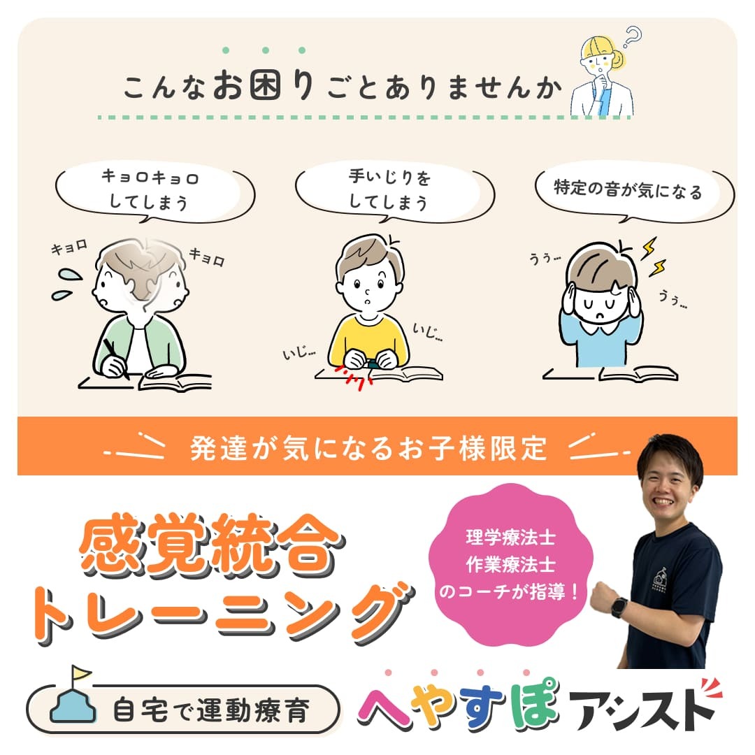 といった課題に対しても、感覚・運動・姿勢など様々な方向性からアプローチできるのがへやすぽアシストの特徴です。