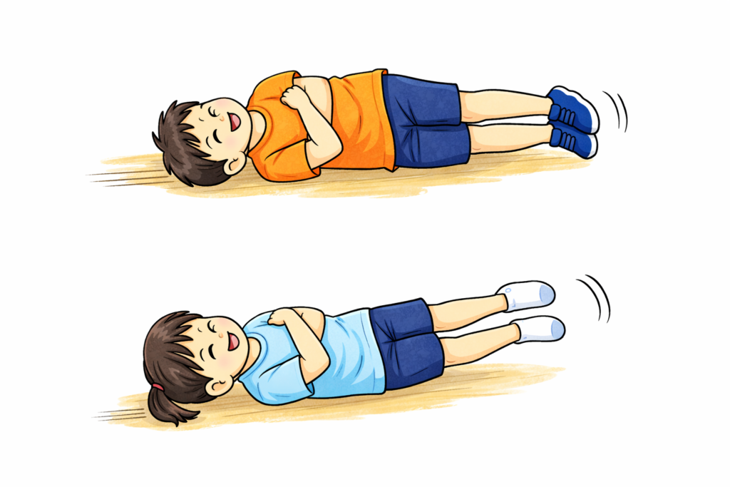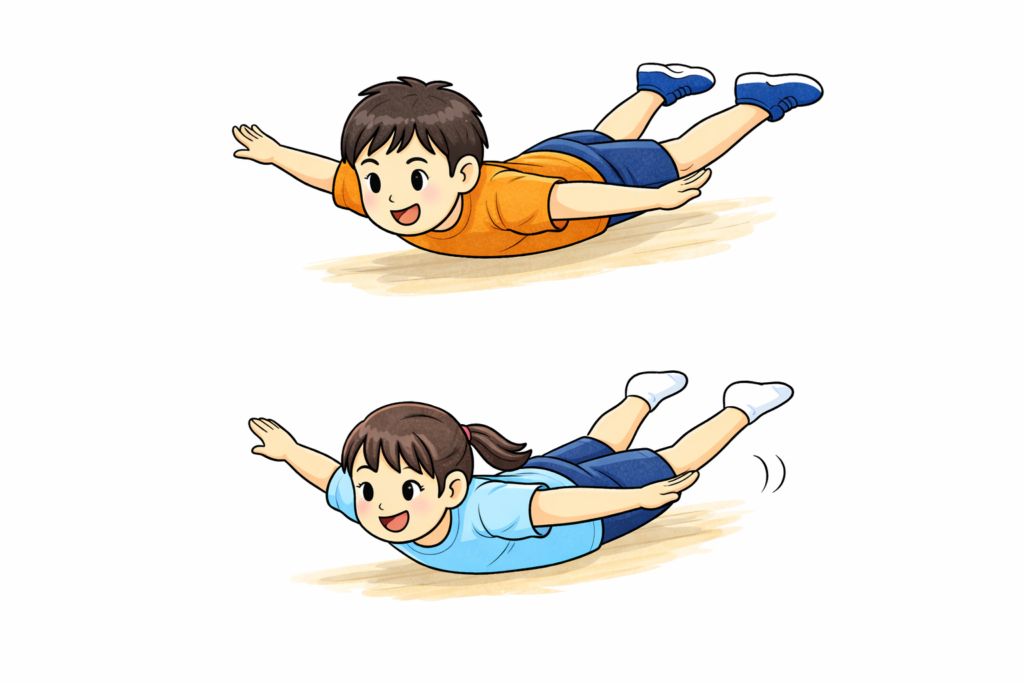 • PTの視点: 自分の体の中心線(正中線)を意識する力を養います。まっすぐ転がれないのは、左右の感覚の統合がまだ未熟なサインかもしれません。