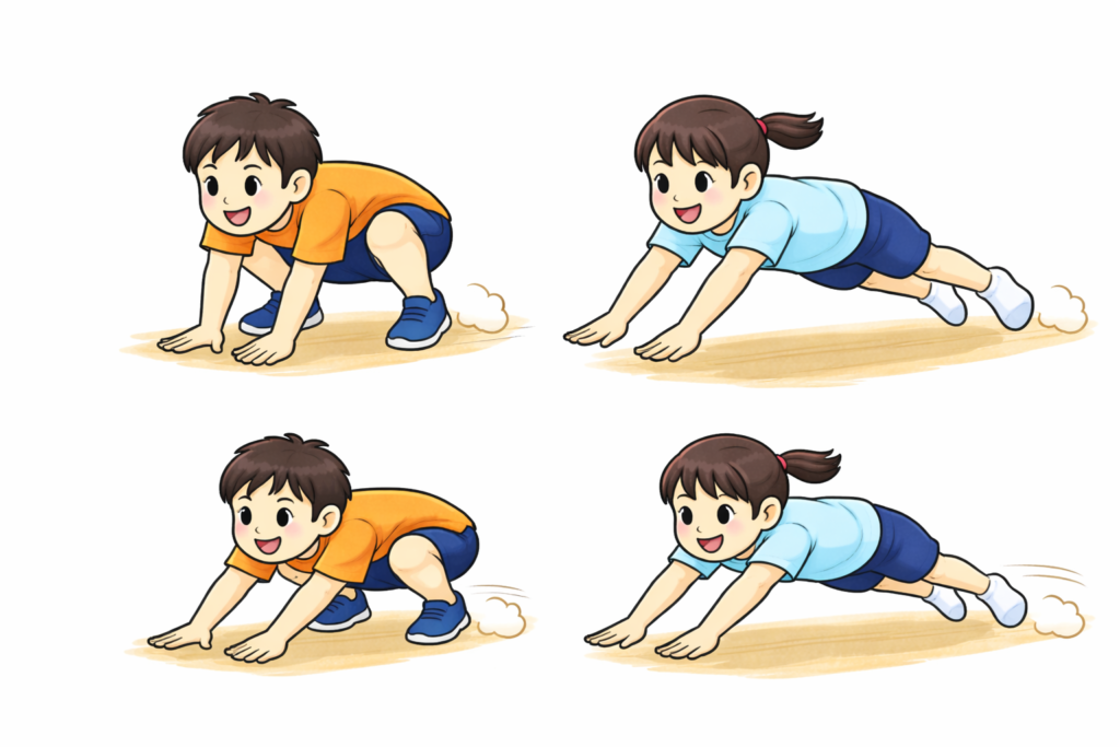 • PTの視点: 腕で支え、足で強く蹴るという「全身の協調」を学べます。股関節の柔軟性も高まります。