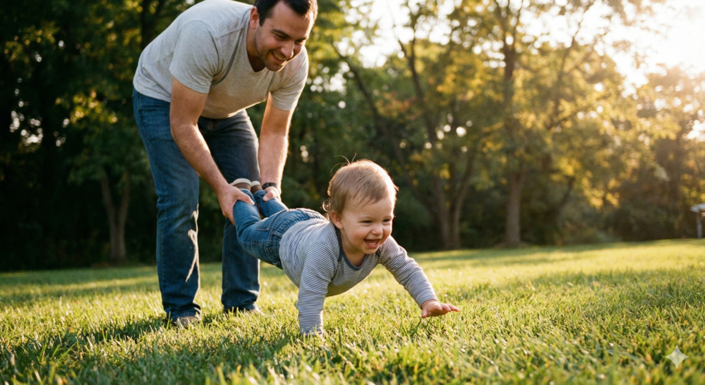 大人が足首(または膝)を持って支えて前進します。 - 科学的メカニズム: